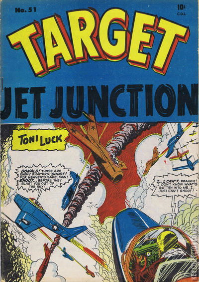 Home / Bell Features / Target / Target #51 Bell Features Released January 1951 Target #51 Add to Collection Want It Synopsis No synopsis available. Add to Collection Buy it on eBay Buy on eBay Low $25 Mid $75 High $250 Synopsis No synopsis available. Details Series Target Cover Date January 1951 Pages N/A UPC N/A Cover Price N/A Final Order Cutoff N/A Creators No creators listed. Price Guide Log in or subscribe to access detailed graded price information and market insights. Log In Subscribe