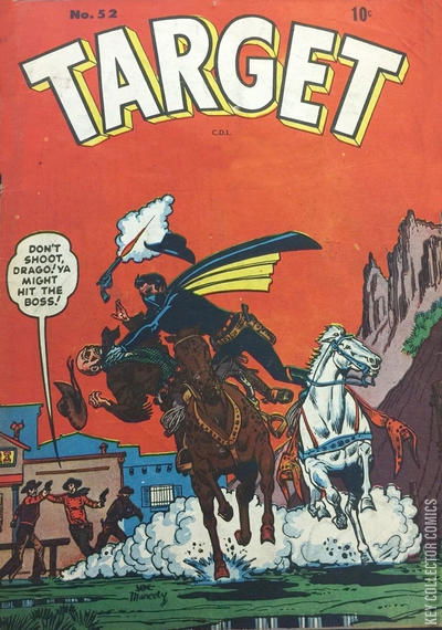 Home / Bell Features / Target / Target #52 Bell Features Released October 1951 Target #52 Add to Collection Want It Synopsis No synopsis available. Add to Collection Buy it on eBay Buy on eBay Low $25 Mid $75 High $250 Synopsis No synopsis available. Details Series Target Cover Date October 1951 Pages N/A UPC N/A Cover Price N/A Final Order Cutoff N/A Creators Cover Artist Joe Maneely Price Guide Log in or subscribe to access detailed graded price information and market insights. Log In Subscribe