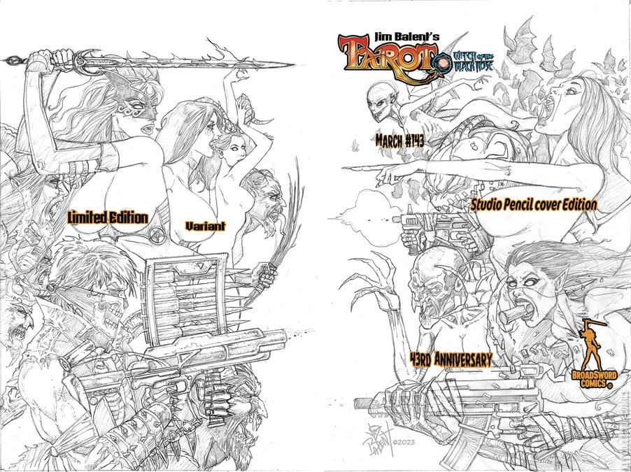 The 24th-Anniversary Issue!!! The last stand against the undead!!! 'Witches versus Vampires!' Tarot returns from her meeting with the Goddess, only to find out that she has been gone for two months! A War has broken out between the Vampires and the Black Rose manor! The Skeleton Man, Raven Hex, and the Krampus, make a life-or-death last stand against the Undead at the mansion! Regular Edition ships equally with 2 connecting covers. Features the tight pencils of both Cover A and B by JIM BALENT!