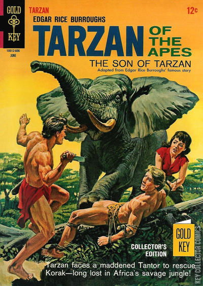 This story is an adaptation of the Edgar Rice Burroughs book The Son of Tarzan, in which the title character leaves his safe home in England, helps an ape return to the African jungle, learns to survive in the jungle, and rescues his true love twice.While enjoying the companionship of the beautiful Meriem, Korak is attacked by a group of tribesmen and wounded in the shoulder by a spear, lying unconscious and defenseless against the tribesmen’s plans to spear him to death. Later in the story, after nobly staying behind and fighting the villagers in order to cover Meriem's escape, Korak is captured and tied to a stake with the intention of burning him to death.Link:see http://www.erblist.com/erbmania/korak/other02.html