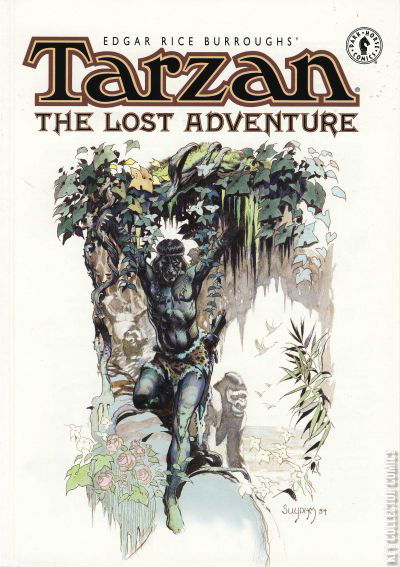 Nearly fifty years ago, Edgar Rice Burroughs' final Tarzan manuscript was locked in a vault, unfinished, never to be read by anyone outside the family. It became the stuff of legend. Now, half a century later, Dark Horse Comics is proud to present Edgar Rice Burroughs' Tarzan: The Lost Adventure. In this never-before-printed novel (serialized over four issues), Tarzan guides an explorer and his beautiful daughter to a remote, mythical African city, and contends with an outlaw safari which hopes to reach the same destination... first. Tarzan's battles with jungle beasts and a brutal sequence in a tribal village are vintage Burroughs at his best! We're presenting this long-lost masterpiece in the same format in which the very first Tarzan story saw print: As a pulp!