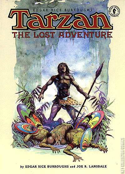 Tarzan leads the Hanson expedition onward to the lost city of Ur, but a safari of desperate outlaws is hot on their heels and they're not there to take pictures! For nearly half a century, Edgar Rice Burroughs' final work, an unfinished Tarzan novel, has been locked in a vault where it became the stuff of legend. Dark Horse Comics is proud to present Edgar Rice Burroughs' Tarzan: The Lost Adventure. The text has been faithfully revised and the story completed by Joe R. Lansdale. In honor of Burroughs' first Tarzan stories, this, his final work, is being presented in the classic format of the old pulps, including accompanying black-and-white illustrations by Gary Gianni and a lush painted cover by Arthur Suydam. Also included in this issue is theĀ