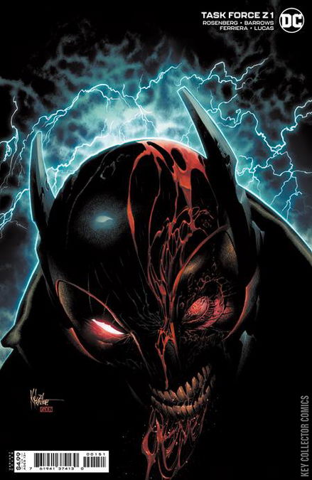 CHAPTER 1: DEATH'S DOOR (OR THE ONE WHERE CRAZY QUILT ALMOST GETS EATEN.) On A-Day, hundreds of Gotham City’s most dangerous and deranged criminals were left dead after an attack on Arkham Asylum and now, they’re getting a second chance at life. A mysterious benefactor is bringing together a new Task Force and has recruited the only person who could lead them, someone who knows what it’s like to come back from a brutal death: Red Hood. Now Jason Todd has to unravel the mystery surrounding this team of the recently deceased while leading a line-up of some of Gotham City’s worst criminals who’ve ever lived: Bane. Man-Bat. The Arkham Knight. Sundowner. Mr. Bloom. 1st team appearance of Task Force Z: Red Hood, Bane, Man-Bat, Arkham Knight, Mr. Bloom 1st team appearance of the Resurrection Twins 1st appearance of Hanna Hobart, revealed to be Sundowner in issue #2, seen on the cover of this issue Red Hood was recruited to lead Task Force Z in Detective Comics #1042-1043. Crazy Quilt mentions escaping from Arkham Asylum after Joker's attack in the A-Day; he also remembers Bane and Arkham Knight's deaths during the attack.