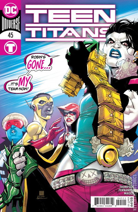 LOOSE ENDS, PART ONE After the shocking events of last month’s Teen Titans Annual , Crush has been named the new leader of the Teen Titans. With Damian Wayne missing, can Crush hold the teen team together? And now that she’s in charge, which villains will Lobo’s daughter go after first? And will Red Arrow, Kid Flash, and Roundhouse follow their hotheaded new leader into battle?