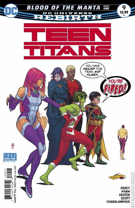BLOOD OF THE MANTA, PART ONE Still dealing with the consequences of “The Lazarus Contract,” Kid Flash’s status with the team is challenged by Damian…and the Teen Titans will never be the same. Meanwhile, Aqualad learns more about his powers and the truth about his lineage is revealed!