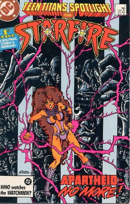 Spotlight on the Tamaranian princess Starfire in a two-part tale! As Starfire returns from Tamaran, she becomes involved in the Apartheid controversy in South Africa.
