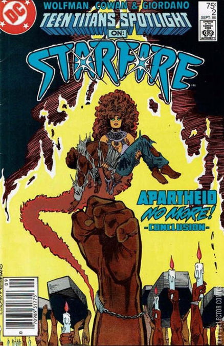 Someone has framed Starfire for the death of a political prisoner. The hero must uncover the plot behind his death before riots break out and tear South Africa apart.
