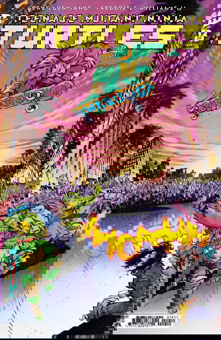 A new era of TMNT begins! Acclaimed Eisner-winning writer Gene Luen Yang (American Born Chinese, Avatar: The Last Airbender, Superman Smashes the Klan) takes on writing duties for TMNT! Following the stunning events of TMNT #12, the Turtles face a different New York…one where they are viewed as heroes! The celebration will be short-lived as new threats vie for control. The mutant yak Papa Beng is determined to widen the power base for his gang. Yet little does he know that he and other TMNT villains are being stalked by a powerful new assassin…Ujigami!