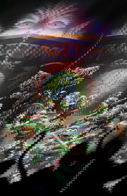 THE END-STAGE BEGINS! As the Armageddon Game reaches its iniquitous climax, the Rat King must take special care to keep his masterfully woven tapestry of anarchy from unraveling too quickly—a feat proving more and more difficult in the wake of mistakes made by his petulant and impatient puppets. No matter—chaos IS the name of the game. Meanwhile, the Teenage Mutant Ninja Turtles have regrouped in the city and are ready to go on the offensive…and this time they have reinforcements. Will the added strength of allies new and old be enough to stop the Rat King from bringing on the apocalypse, or will they meet their doom in the perilous game?