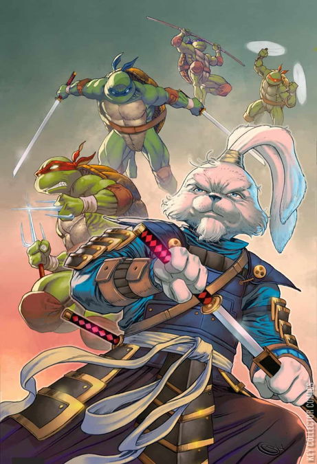The Teenage Mutant Ninja Turtles pursue the evil cyborg genius Dr. WhereWhen through a time portal&and emerge in feudal Japan! There, they encounter Usagi Yojimbo, 20 years into the samurais future but decades after the arrival of Dr. WhereWhen&who has already carved himself a fiefdom using mechanized clockwork samurai robots&with the intention of conquering both the past and current timelines!