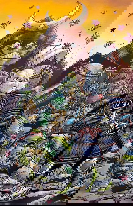 The Teenage Mutant Ninja Turtles pursue the evil cyborg genius Dr. WhereWhen through a time portal&and emerge in feudal Japan! There, they encounter Usagi Yojimbo, 20 years into the samurais future but decades after the arrival of Dr. WhereWhen&who has already carved himself a fiefdom using mechanized clockwork samurai robots&with the intention of conquering both the past and current timelines!