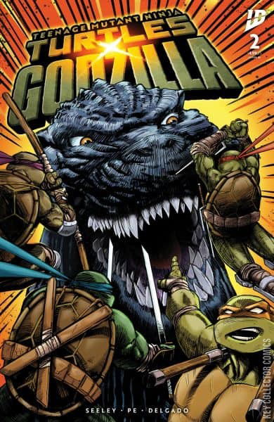 Tim Seeley and Fero Pe continue telling the biggest crossover of the year in TMNT x Godzilla #2!King Ghidorah has come to New York City! It’s up to the Teenage Mutant Ninja Turtles, led by Master Splinter, to stop the three-headed kaiju. Meanwhile, only Mechagodzilla defends Tokyo against Godzilla, Rodan, and Anguirus! The Turtles will need to act fast if they’re going to save New York and get to Japan!And with all his enemies occupied, the Shredder moves undetected toward unlimited kaiju power…