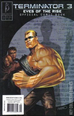 Terminator 3: Eyes of the Rise is an official adaption of the film Terminator 3: Rise of the Machines with 2 parts of story, created by Beckett Comics in September to October 2003. The two issues were helmed by Ivan Brandon. (Issue #1 - W: Miles Gunter, P: Mike Hawthone, I: Rick Remender, C: Brusco, covers by Simon Bisley and Amano) (Issue #2 - W: Gunter, A: Kieron Dwyer, C: Mounts, covers: Amano) The comic is preceded by Terminator 3: Before the Rise and followed by Terminator 3: Fragmented.
