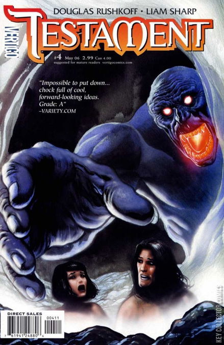 This issue begins with Melchizedek coming to visit Abraham to tell him that his nephew Lot, along with his family, has been captured by giants controlled by Astarte by order of King Chedorlaomer. Abraham readies himself and his men to rescue them (Genesis 14: 1-16). (A good deal of artistic license is taken with this retelling as this Biblical narrative actually precedes the Sodom and Gomorrah narrative). Astarte and Moloch express confidence that they will defeat Abraham. The narrative then shifts to Jake and Dinah being interrupted by a large mechanical insect robot that demands that they exit the van immediately. With the couple not exiting the van quickly enough, the robot begins firing at the van, destroying it. Astarte secures the couple inside some type of field and whisks them away to a tar pit near the ocean. The insect robot captures them almost immediately. At the Sterns’ home, Alan and Greta are arguing about the government’s action against the protestors. Greta blames Alan, while Alan claims he didn’t think the government would use the implants as a weapon. Amos and his gang arrive at the Sterns’ telling them that Jake has been captured. Amos shows Dr. Stern video of the giant insect robots, which he recognizes as a project that was supposed to have only civilian applications—digging ditches and wells. Dr. Stern begins to formulate a plan, telling Greta he has something for her to do. At the base, Jake and Dinah are met by Alec, who claims to be on their side working on the inside. Jake and Dinah are skeptical. Greta goes to the Brookhaven National Laboratory’s Center for Functional Nanomaterials where she is met by Dr. Green who asks her to sign some documents transferring the majority of her staff under his control. Amos takes Dr. Stern back to their hideout where Stern is greeted by Tyrone singing “Rock My Soul in the Bosom of Abraham.” Stern is confused. Dr. Green calls Pierre Fallow, who is lounging outdoors in his underwear, holding a drink. Behind him are two large statues of Moloch and Astarte, which are in turn surrounded by dozens of people engaged in an orgy. Green suggests they are moving too quickly. Fallow claims they are in a position of strength. The last pages again juxtapose the Biblical narrative with the main narrative. As Cherdorlaomer prepares to battle Abraham, Dr. Green and Fallow prepare to attack Amos and his group. As Abraham rallies his men to the fight, Dr. Stern rallies Amos and the others.