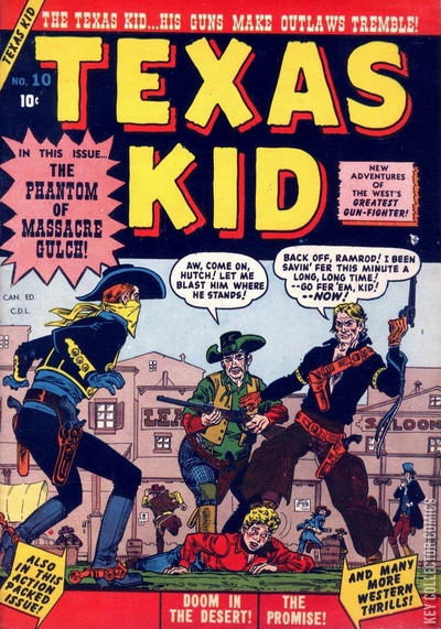 Home / Bell Features / Texas Kid / Texas Kid #10 Bell Features Released April 1951 Texas Kid #10 Add to Collection Want It Synopsis No synopsis available. Issue 1 of 3 Add to Collection Buy it on eBay Buy on eBay Low $25 Mid $75 High $250 Synopsis No synopsis available. Details Series Texas Kid Cover Date April 1951 Pages N/A UPC N/A Cover Price N/A Final Order Cutoff N/A Creators Cover Artist Joe Maneely Price Guide Log in or subscribe to access detailed graded price information and market insights. Log In Subscribe