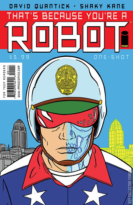 TWO COPS, ONE'S A ROBOT, ONLY THEY DON'T KNOW WHICH! BAFTA winner and writer on HBO's award winning Veep, DAVID QUANTICK teams up with THE BULLETPROOF COFFIN's SHAKY KANE on this migraine inducing Pop Art Cop-Buddy one-shot set in a near future Los Angeles. WARNING: Contains oversized patrol cars and perilous situations.