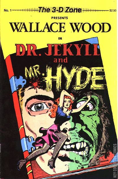 Artist Wallace Wood does a disturbing and visually stunning job with his first horror story in Robert Louis Stevenson's classic tale "Dr. Jekyll and Mr. Hide". For the first time his work is rendered up to you in amazing 3-D Zonevision. B&W with 3-D red and blue, 32 pages on standard paper with a $2.50 cover price.