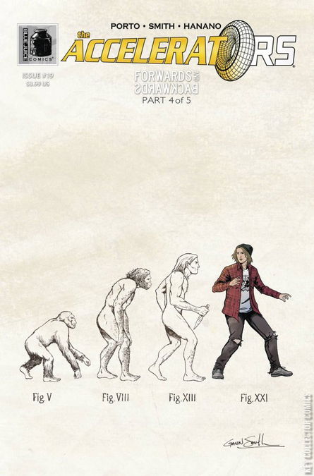 The new five-issue arc of The Accelerators hurtles onward! Reunited with his fellow time travelers, a troubled Spatz tells his story. He has successfully traveled back in time, but instead of finding a way home, he's discovered an even more tangled web of time-travel madness. Spatz's deranged older selves are lurking everywhere, manipulating history as they war with each other for control of the timeline. When does it all end?