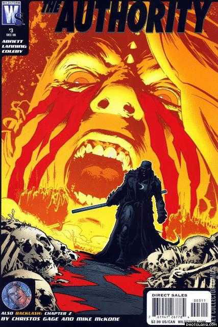 "Authority: World's End - Chapter 3" The Midnighter confronts the Eidolon and his Army of the Mad... but can even he overcome an entire army alone? And the Engineer makes a startling discovery in the bowels of the Carrier that could turn the team's fortunes around in this desolate new world! Plus, the second chapter of the Marc "Backlash" Slayton backup story continues by Christos Gage and Mike McKone (GREEN LANTERN, TEEN TITANS)!