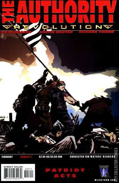 "The Eternal Return Part 3 of 12: The Turning Tide" The Sons of Liberty are eating on their benefactor's shift-ship. Maiden America shares her concerns of the American civilians that were caught in the crossfire, but Paul Revere assures her that their mission against The Authority isn't always easy and that their benefactor's plan is already working against them with the American public increasingly going against their rulers. After Johnny Rocketman is scolded by his team for his racist manners, Paul Revere checks on Fallout's well being and his benefactor. Once learning of Fallout's status of being stable from his excessive nuclear energy, Paul tells his benefactor that he and his team are concerned about his benefactor's plan due to the number of innocent lives that were killed in their attacks. Paul's benefactor reassures that the people's lives will be avenge and that the whole purpose of his plan was to free America from The Authority. Paul is then curious of the people who joined the Sons of Liberty's crusade, in which his benefactor replies that the people are in the ship's virtual reality room in making sure they "don't forget what this is all about". The people in the VR room are shown venting their outrage and hatred towards menacing depictions of The Authority. Jack Hawksmoor, The Doctor and The Engineer watches a replay of Hawksmoor's address to the Sons of Liberty, which he justified what The Authority has done for America and that if the Sons want to fight them, then they wouldn't involve with the deaths of innocent civilians. Jeroen is concerned of Hawksmoor of not mentioning the deaths of the Shamanists in his address. Hawksmoor reason that he had tried incorporating the Shamanists in his speech but consider the final address to be too "complicated", and that few facts works best as possible, in which the Engineer also agrees. His teammates' response infuriates The Doctor in which he lashes out at The Engineer's indifferent attitude, stating that not only his followers were murdered but he can still hear their screams. After Jeron angrily leaves them, Jack express the difficulties that is mounting before The Authority, including internal struggles within the team. Meanwhile at the Carrier's control room, Midnighter talks to the Carrier of needing its help and allows his memories of his experience in the future downloaded into the shift-ship. As he is doing this, Jenny Quantum watches. The Engineer alerts to The Authority of the Sons of Liberty's recent rebellion in Seattle. The team gather in the junction room but finds that the Carrier couldn't allow them into Seattle. Fortunately, The Authority can only travel to Tacoma, the nearest to Seattle. As they reach Tacoma, Hawksmoor questions The Doctor of not knowing the attack sooner. The Doctor tries to explain that the entire city of Seattle seems to be "anesthetized," preventing Earth from feeling it. Once in Seattle, the Authority are too late to preventing the Sons of Liberty's attack. The Doctor and The Engineer goes to the local Temple of the Shaman and finds the temple's followers all dead. The Engineer tries to sympathize with The Doctor, but The Doctor then despondently wonder if his creation of his religion of making the world better only allows its followers to be turn into human targets. Above Seattle, Apollo confirms to Hawksmoor that he have found that the Sons of Liberty and their followers' energy signatures have already left the city. Days later, the Sons of Liberty and their growing followers have struck city after city while avoiding The Authority's intervention. The Authority vented their difficulty on tracking the Sons of Liberty is due to somehow having the Carrier shut off from them and allowing cities to be disconnected from the Earth. But The Doctor then realize the most obvious way in tracking the Sons of Liberty is by noticing the cities that are not felt, and then informing that the Sons are in Dallas. At Dallas, the Sons escorts their new followers into a blue-colored Shift-Door. Johnny Rocketman then notice Apollo speeding right towards them. Paul Revere tells Rocketman and Maiden America to go with their followers and secure the Shift-Door, before borrowing Maiden America's hammer. As Apollo continue to head for them, he is then battered away by Paul with Maiden's hammer. After Paul leaves through the Shift-Door, Apollo is surprised to see the Sons possessing Shift-Door technology. Once The Authority regroup with Apollo, he then reveals to the others of his discovery. This discovery gives the theory of the Sons of possessing their own Carrier, and that they are broadcasting a kind of interference in jamming The Authority's Shift-Doors from reaching the attacked cities. Hawksmoor ask The Engineer if they could track the Sons of Liberty's Carrier, but she explains the impossibilities in finding them. Midnighter suddenly makes an outburst, stating that they are hopeless to solve anything and criticizing the way they are governing America. Hawksmoor goes into a fierce argument with Midnighter, which soon turns into outright hostility, unaware that their fight is being recorded by a TV news team. The other teammates stops Hawksmoor and Midnighter, in which the latter then start walking away. Midnighter and Hawksmoor's fight is broadcast across the country in which news-outlets reports a potential breakup within The Authority. The Sons of Liberty's benefactor and Paul Revere watches this. The benefactor is pleased to see this internal struggle going according to his plan before telling Paul to gather his team for a "real battle" to put an end to The Authority.