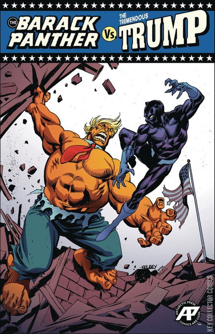 O-bomb-er takes on the Tangerine Titan in a presidential punch-out that'll leave only one man standing-if he's lucky! No pay-per-view, no limited seating! Two possible outcomes, so no matter who you root for, YOU come out a winner! You can even get both without any penalty of stuffing your subscription box (or mallbox)! This December treat will have you saying 'Merry Christmas' (or the holiday of your choice) again! Can we Make Comics Great Again? Yes, We-kanda!