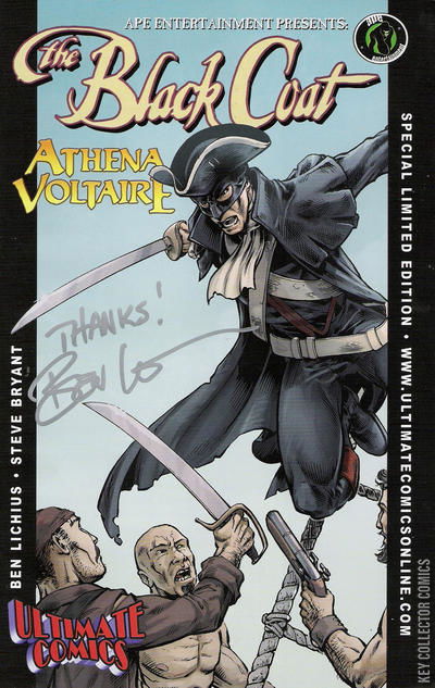 Two Pulp-tastic Heroes. Two Complete Stories. Two Centuries. Two Dollars! Find out what a Revolutionary-era Crusader and 1930's Aviatrix have in common, besides their status as two of Ape's most exciting heroes! An adventure spanning two centuries: from The Black Coat facing down a pirate attack to Athena Voltaire encountering the horrifying consequences of the treasure they sought. The two variant covers by Eisner-award nominee Steve Bryant combine to form a poster image! It's an action-packed crossover 150 years in the making!