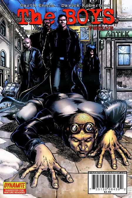The most talked about comic of the year continues from DYNAMITE ENTERTAINMENT, writer/co-creator Garth Ennis and artist/co-creator Darick Robertson! The plot thickens as Little Nina's backers are revealed, and the Boys dig deeper into the mystery of the exploding supes. Hughie learns the delicate art of prisoner interrogation, and Vas lets slip the secret of the Black Skull Vodka... in Glorious Five Year Plan, part two.