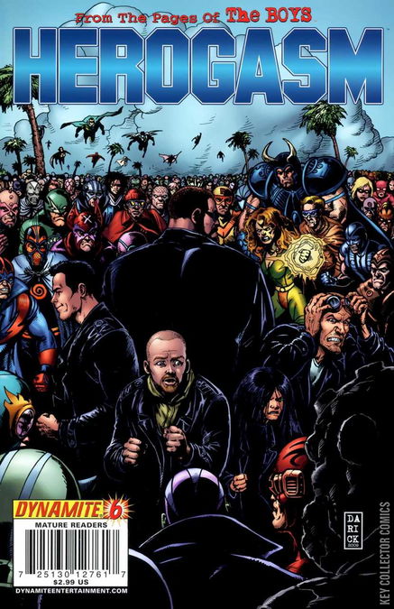 The Boys are forced into action as a surprise development threatens to reveal their presence on Isla McFarlane. The Supes are leaving- but exactly what has happened to the Homelander, and what are his intentions now that Vought have set the scene for Vic the Veep's next great political leap forward? Sudden death and shocks galore, as Herogasm shudders to its gasping, spurting climax. Recommended for Mature Readers.