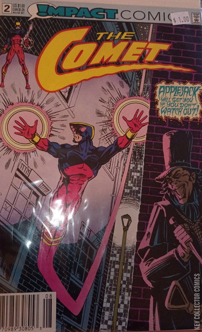 The Comet may want to re-think the letdown he felt after his first super-heroic confrontation with the less-than-challenging hi-tech gamers when he faces his first dangerous super-villain, Applejack! Is he a modern-day serial killer, the spirit of a vengeful ghost...or both?