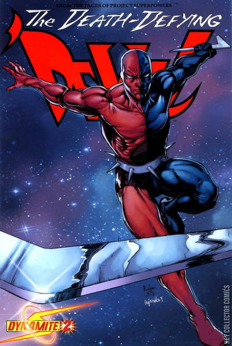Issue #2 continues the adventure from Alex Ross, Joe Casey and Edgar Salazar as the spin-off from PROJECT SUPERPOWERS races through its first story arc! Featuring the Dynamite debut of the Silver Streak and a surprise appearance on the last page of another 'lost' ally of the 'Devil's in his quest to rid this new world of The Claw once more! Plus, more clues to the mysterious and shattering origin of the 'Dragon'! Featuring two 'Dynamite' main covers for this amazing second issue by ALEX ROSS (50%) and JOHN CASSADAY (50%). Chase covers by Golden Age great GEORGE TUSKA (1-in-12) and interior artist EDGAR SALAZAR (1-in-15)! All are printed with high-end cardstock covers a la Marvel's Civil War and Secret Invasion!