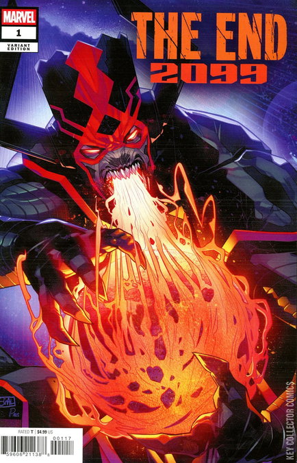 ONE FUTURE ENDS...ANOTHER BEGINS. 3099! From the ashes of the AGE OF HEROES, a new generation of vigilantes, like SPIDER-MAN 2099, NOVA 2099 and RED HULK 2099, emerged in the dystopia that followed to forge a bright, new future - a future that has come to an end in the face of ABYSSYUS, a horrifying fusion of a KNULL-INFECTED GALACTUS! As the DEVOUR IN BLACK descends upon the world, a deal is struck with the devil - LITERALLY as MEPHISTO bets the fate of 2099 in a brutal battle of survival, pitting the warriors of 2099 against fan-favorite characters from across the Multiverse - like AGE OF APOCALYPSE-ERA WOLVERINE, CLAREMONT/BYRNE-ERA CYCLOPS AND MARVEL GIRL, HOUSE OF M-ERA WANDA and so many more - each battling for their own universe's survival! It's hero against hero in this no-holds-barred war against extinction! But as Marvel's past and present duke it out, only one thing is certain: The future is coming, and it's arriving in the form of…SPIDER-MAN 3099?!