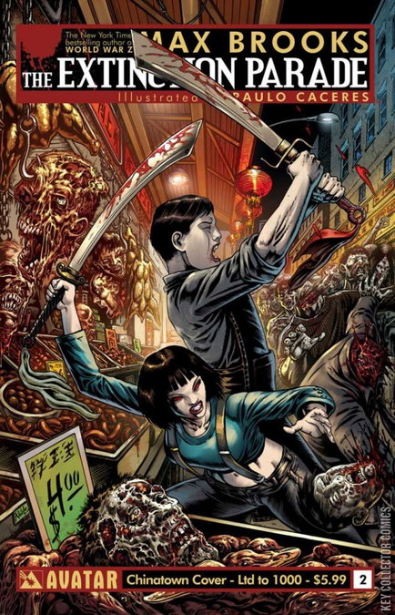 MAX BROOKS - author of the New York Times Best Selling novels, World War Z and The Zombie Survival Guide, brings a new vision of stark terror to comics with this innovative mega-series! Across the globe the alpha subdead vampire race has identified the battle lines. With their prey dwindling beneath the weight of zombie apocalypse, the bloodsuckers must decimate the ranks of the walking dead to ensure their survival. But the rolling plague hordes are like a tidal wave of destruction, wiping clean the earth beneath them and swelling their ranks to legion. Will even the superhuman ferocity of the vampire race be able to bring mankind back from the brink for their own nefarious purposes? Three species in mortal conflict. This is how a species dies. Available with Regular, Wraparound, End of a Species and Bloodwashed Retailer Incentive covers by Raulo Caceres. Also, available with a special black Leather cover, limited to just 1000 copies!
