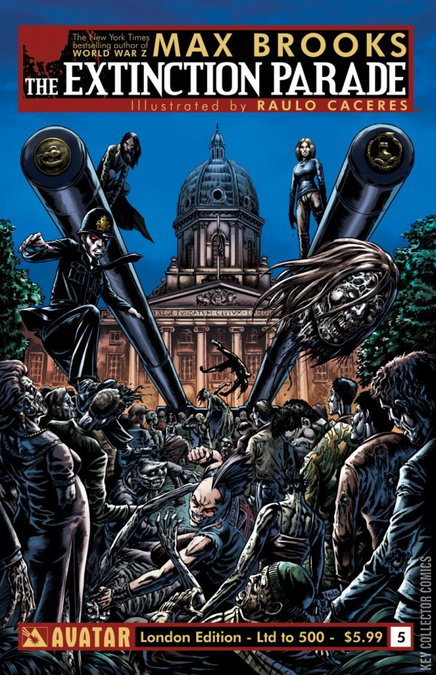 Horror doesn't get any bigger than having New York Times Bestselling Author; MAX BROOKS deliver a one-of-a-kind masterpiece like Extinction Parade! Brooks' zombie fiction has been a staple of the bestsellers lists but this new comic book project ups the ante with a whole new set of creatures to fear. And this issue begins the all-out war of the undead as the vampire race is finally thrust into the center of the subdead zombie epidemic. Three species in mortal conflict - Extinction Parade: This is how a species dies! Available with Regular, Wraparound, End of a Species and Bloodwashed Retailer Incentive covers by Raulo Caceres. Also, available with a special black Leather cover, limited to just 1000 copies!