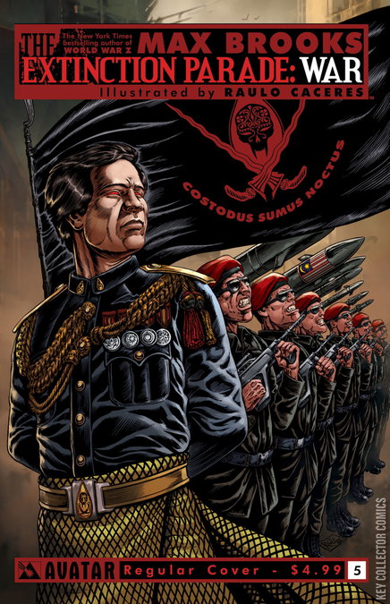 The final issue of the second series epic conflict erupts into a super-size issue as the Army of the Bloodline is finally revealed! The war between Vampires and Zombies reaches a critical point as the long rumored Vampire army is finally assembled, preparing for a way to end this War. New York Times Bestselling Author MAX BROOKS pushes the limits of modern horror to the breaking point in this pivotal chapter in his epic tale of undead class battle. Extinction Parade will return in 2015 with the third, and final chapter of the most epic conflict ever! Available with Regular, Wraparound, End of a Species, Leather (limited to just 1000 copies), and Bloodwashed and Pure Art Retailer Order Incentive covers, all by series artist Raulo Caceres.
