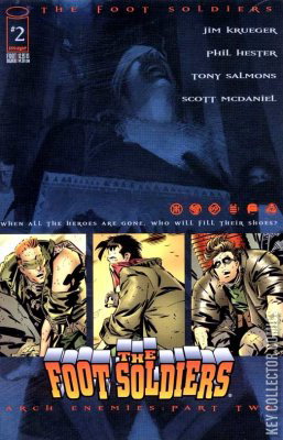 Chains one-page story, script by Jim Krueger, pencils by Michael Avon Oeming, inks by Jason Martin. Arch-Enemies Part 2: The Tragedy Of The Travesty Tapestry, script by Jim Krueger, pencils by Phil Hester, inks by Bruce McCorkindale; Aspects of the heroes' past return to plague them. Foot Soldiers On Ice text story, script by Jim Kreuger, art by Tony Salmons. The Calling starring Rags Murphy, script by Jim Krueger, pencils by Scott McDaniel, inks by Derrick Fisher. The Lion And The Mouse text story, script by Jim Krueger, pencils by Phil Hester, inks by Bill Sienkiewicz.