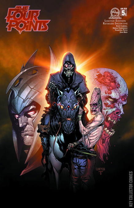 Famine strikes! The four learn their days are numbered, as their worst nightmare becomes a reality as their enemies pool their forces. Meanwhile, Ara's true identity is called into question, with the answer possibly putting the entire team's lives in danger! This penultimate issue races to the epic conclusion of The Four Points. Aspen welcomes back acclaimed writer Scott Lobdell to introduce to you this years most exciting new series, FOUR POINTS!