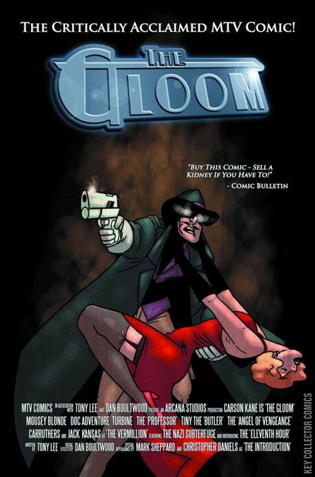 MTV Comics and Arcana Studio present The Gloom. Once called a 'Mel Brooks movie of a comic' by Comics International, acclaimed creators Tony Lee (Doctor Who) and Dan Boultwood (It Came!) return to the hero that brought them together! In 1940's Manhattan he's the only vigilante blocking the Vermillion and his Nazi allies from their plan to rule the world with Atomic Zeppelins! No pulp hero is safe from parody!