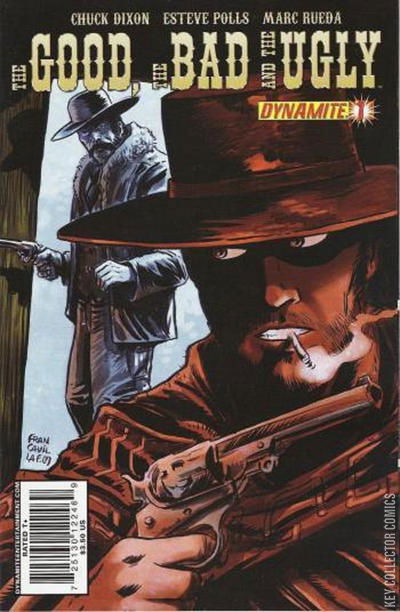 From the classic movie, the Good, The Bad, and The Ugly! The Man with No Name rides again, this time under the veteran hand of writer Chuck (G.I.Joe) Dixon in a brand-new Dynamite #1! Featuring incredible art by Esteve Polls, and iconic covers by Lone Ranger artist Sergio Cariello, Zorro artist Francesco Francavilla and Wolverine Noir artist Dennis Calero, Dixon tells the tale of 'DEAD MAN'S HAND' in a five part arc that continues the strong direction Dynamite's westerns are known for!