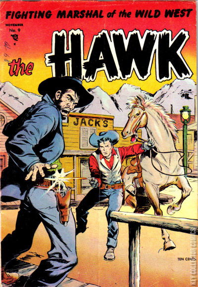 Home / St. John / The Hawk / The Hawk #9 St. John Released November 1954 The Hawk #9 Add to Collection Want It Synopsis No synopsis available. Issue 5 of 8 Add to Collection Buy it on eBay Buy on eBay Low $35 Mid $105 High $350 Synopsis No synopsis available. Details Series The Hawk Cover Date November 1954 Pages 36 UPC N/A Cover Price $0.10 Final Order Cutoff N/A Creators No creators listed. Price Guide Log in or subscribe to access detailed graded price information and market insights. Log In Subscribe