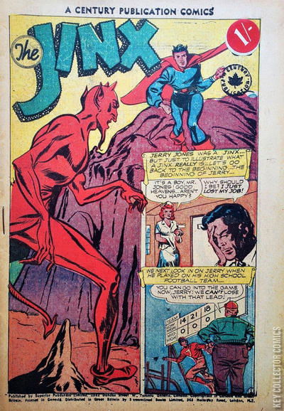 Home / Superior / The Jinx / The Jinx Superior Released January 1946 The Jinx Add to Collection Want It Synopsis No synopsis available. Add to Collection Buy it on eBay Buy on eBay Low $35 Mid $105 High $350 Synopsis No synopsis available. Details Series The Jinx Cover Date January 1946 Pages N/A UPC N/A Cover Price N/A Final Order Cutoff N/A Creators No creators listed. Price Guide Log in or subscribe to access detailed graded price information and market insights. Log In Subscribe