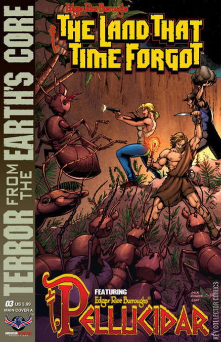 It's the cataclysmic conclusion of THE LAND THAT TIME FORGOT/PELLUCIDAR crossover, and an allout war on the prehistoric continent of Caspak! The horrifying, winged Weiroo and insidious Mahars from Pellucidar have launched their earthshaking attack on tribes people and dinosaurs alike, and only See-Ta the Savage and Dian the Beautiful can rally Caspak's warring tribes in one final retaliatory attack against the invaders! THE LAND THAT TIME FORGOT TERROR FROM THE EARTH'S CORE #3 comes with three covers - Two Connecting Main Covers by Gene Magora and a Wish You Were Here Postcard Retailer Incentive Edition by Dan Parsons.
