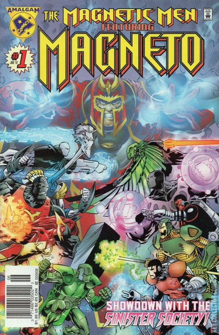 BORN AGAIN! In order to save two universes, the young hero known as Access was forced to use the power of Amalgam (see Marvel versus DC (1996) #3). In this issue, Magneto's loyal friends have fallen in battle. So he recreates them in the form of the robotic Magnetic Men (Metal Men/Brotherhood of Evil Mutants). But will they survive a visit to Krakoa, the Living Dinosaur Island?