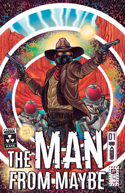 In the dry and dead future that's coming soon, all life belongs to Oppenheimer-obsessed billionaire Harvard Denny and his corporate scavengers from Smile, Inc., who pillage the wastelands in search of atomic contraband. As the race to acquire the a crashed spacecraft's cargo begins, our fate will be decided by a masked bandit and the cold iron of his laser rifle. He knows no name, no home, no surrender-only the whispered hush of those in need who dare call him . . . THE MAN FROM MAYBE! Give yourself over to an upside-down world where all mutants eat lead and all dinosaurs speak truth in the DOUBLE-SIZED, 48-PAGE debut of a postmodern, post apocalyptic epic of Western-infused action from rising star Jordan Thomas (Weird Work, XINO) and psychedelic warlord Shaky Kane (Bulletproof Coffin, The Beef) as the Man From Maybe sets his sights on THE CRATE OF DEATH!