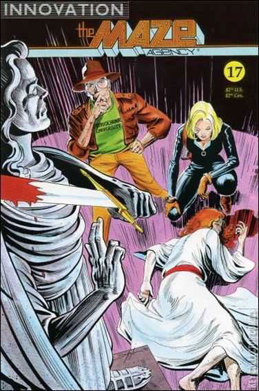 In "Terrible Swift Sword," it's a beautiful fall knight -- and The MAZE Agency's Jennifer and Gabe are camping with their friends, the Rydell family. Aside from Gabe being a tenderfoot, there's tension in the nighttime air: Carly, the Rydell's 15-year-old daughter, has become involved with "The Church of Michael," a religious cult! What's more, Judah and Sister Ruth have arrived from the cult -- bringing with them mayhem and murder!*This issue again has no editor credit, however it can be assumed that this issue was edited by regular series editor, David Campiti.
