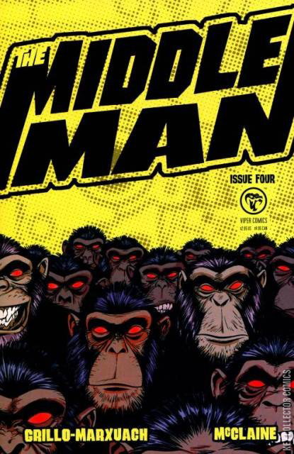 The circle closes as the first chapter in the epic, yet hauntingly personal saga of The Middleman ends in a hail of gunfire and bananas. Will Wendy endure captivity at the hands of the mad parlophone ape known only as 'The Big Boss?' Will, The Middleman survive a climactic showdown at the city zoo? Will Wendy forget her conceited jerk of a boyfriend and overcome her painter's block? All your questions will be answered - and your answers will be questioned - in this climactic, arc-ending issue of The Middleman!