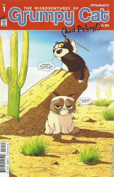 Dynamite proudly presents The Misadventures of Grumpy Cat #1, featuring "The World's Grumpiest Cat" and her brother, Pokey! With her ever-present pout and sassy disposition, Grumpy Cat has won the hearts of people everywhere. Grumpy Cat is the perfect combination of unbearable cuteness, instant fan appeal, and established multimedia presence. If you love the memes, the videos, and that irresistible scowl, then get ready for the wildly fun antics of Grumpy Cat and Pokey in Dynamite's all-new, all-sensational Grumpy Cat comics! Grumpy Cat's global following includes 7.6 million Facebook fans and over 31 million YouTube views. Since her photos first went viral in 2012, Grumpy Cat has gone from Internet star to real-life celebrity. She has two New York Time Best Selling Books, her own Lifetime movie Grumpy Cat's Worst Christmas Ever (voiced by actress Aubrey Plaza), has made numerous appearances including the MTV Movie Awards, American Idol, The Bachelorette, The Today Show, SXSW, Good Morning America, and even hosted WWE Monday Night Raw. Grumpy Cat is Friskies official "Spokescat", has filmed videos with Disney and Sesame Street, and appears in commercials for McDonald's and Honey Nut Cheerios.