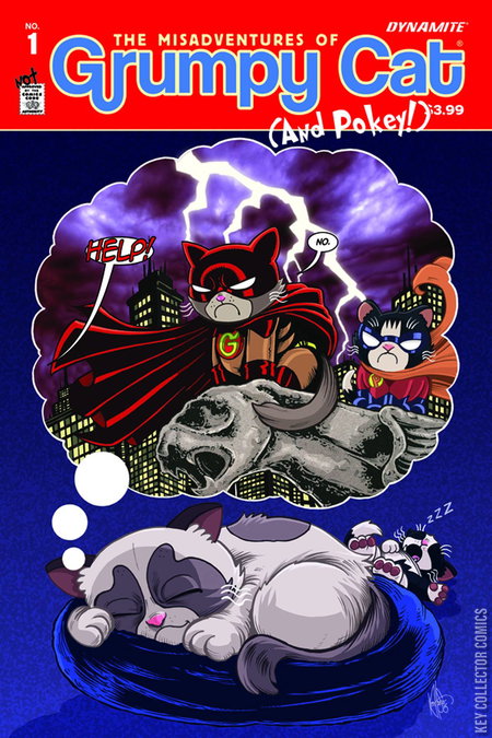 Dynamite proudly presents The Misadventures of Grumpy Cat #1, featuring "The World's Grumpiest Cat" and her brother, Pokey! With her ever-present pout and sassy disposition, Grumpy Cat has won the hearts of people everywhere. Grumpy Cat is the perfect combination of unbearable cuteness, instant fan appeal, and established multimedia presence. If you love the memes, the videos, and that irresistible scowl, then get ready for the wildly fun antics of Grumpy Cat and Pokey in Dynamite's all-new, all-sensational Grumpy Cat comics! Grumpy Cat's global following includes 7.6 million Facebook fans and over 31 million YouTube views. Since her photos first went viral in 2012, Grumpy Cat has gone from Internet star to real-life celebrity. She has two New York Time Best Selling Books, her own Lifetime movie Grumpy Cat's Worst Christmas Ever (voiced by actress Aubrey Plaza), has made numerous appearances including the MTV Movie Awards, American Idol, The Bachelorette, The Today Show, SXSW, Good Morning America, and even hosted WWE Monday Night Raw. Grumpy Cat is Friskies official "Spokescat", has filmed videos with Disney and Sesame Street, and appears in commercials for McDonald's and Honey Nut Cheerios.