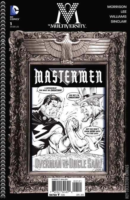 SPLENDOUR FALLS Superstar writer Grant Morrison joins legendary artist Jim Lee on Earth-10 for one of the most dynamic, action-packed issues of this entire world-shattering series – THE MULTIVERSITY: MASTERMEN! Imagine a world where the Nazis not only won World War II but went on to direct world culture for the next 60 years with the help of an orphaned, alien super-weapon known as Overman! But hope is not lost! Rising from the ashes of oppression are a diverse band of heroes raging against the fascist regime – a band of heroes known as THE FREEDOM FIGHTERS! What nightmarish parallel worlds haunt the dreams of Overman? Who is the mysterious figure called Uncle Sam? And when the dust settles, will the actions of Phantom Lady, Black Condor, Human Bomb, Doll Man and The Ray be enough to stop Leatherwing, Blitzen and the other “heroes” of Earth-X? Learn all this and more in this exciting issue that acts as chapter seven of the critically acclaimed MULTIVERSITY storyline.