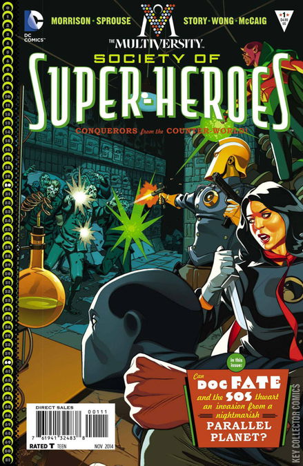 CONQUERORS FROM THE COUNTER-WORLD Grant Morrison joins modern legend Chris Sprouse (TOM STRONG, BATMAN: RETURN OF BRUCE WAYNE, ACTION COMICS) for a trip to Earth-20 starring a Society of Super Heroes unlike anything you’ve seen before! It’s pulp superhero action with a post-modern twist — you can’t afford to miss it! Who is the demon-like Green Lantern protecting Earth-20? What secret does Doc Fate hold that could save the world? Who are the hand-to-hand and air-to-air combat queens known as the Blackhawks? And what happens when these heroes come face to face with their diabolical Earth-40 counterparts – led by Vandal Savage – for an epic war between parallel worlds? Find out all that and more in this exciting stand-alone issue which also acts as chapter two of the overall MULTIVERSITY storyline. Join us, if you dare, for THE MULTIVERSITY!