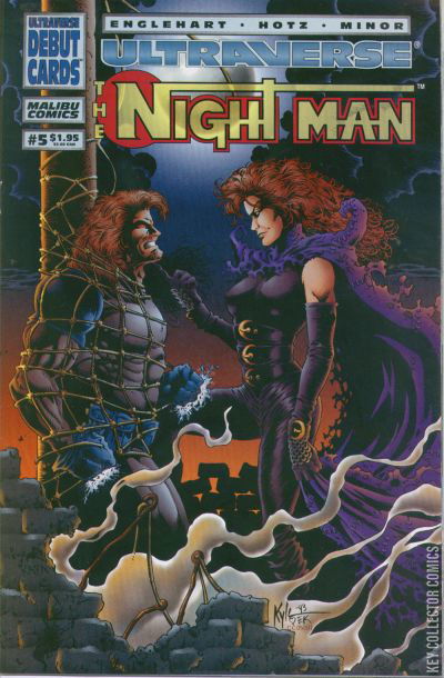 "Alone" Night Man finds a corpse with his chest agape and knows he was a victim of Rhiannon. He is able to track her down and fights her, but he must also fight a strong attraction to her as well. They discuss their mutual attraction in the middle of the fight and she makes him prove that he is good enough for her by placing him in a deadly trap that he is able to escape from. She tells Night Man to be by her side but he resists because she is a murderer, though she claims it's natural for her to survive. At the end of their confrontation, Rhiannon falls off a tower and into the ocean, seemingly to her death.